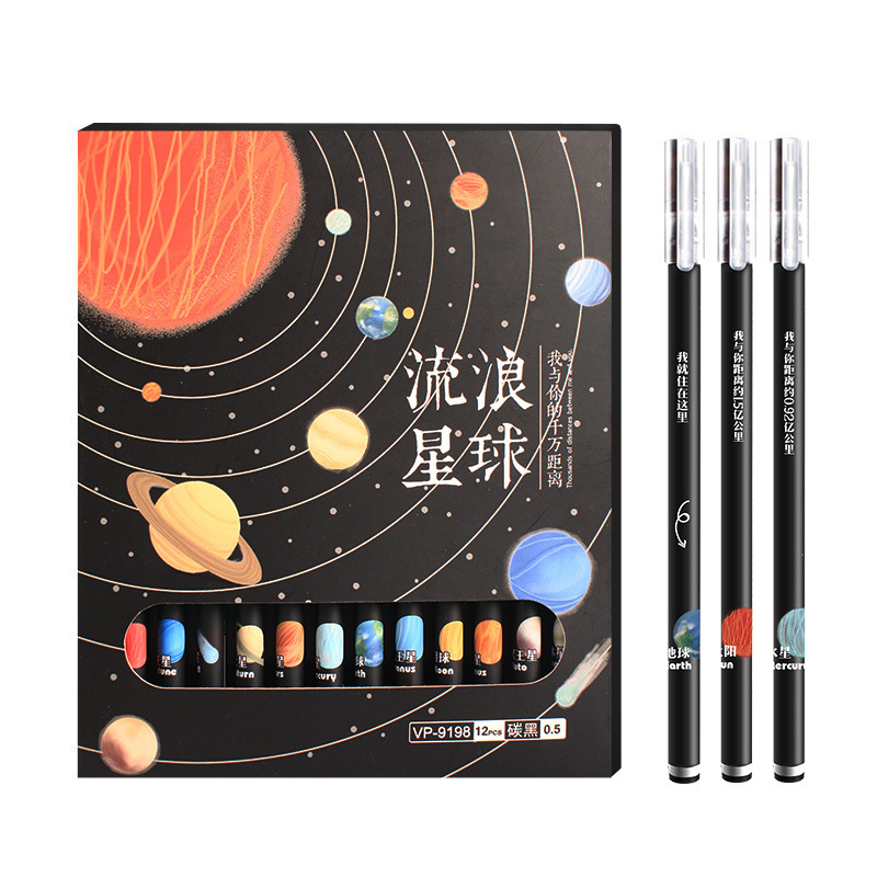 流浪星球中性笔盒装碳黑0.5mm全针管创意黑笔SCM至尚创美 盒装礼品水笔 礼品笔定制