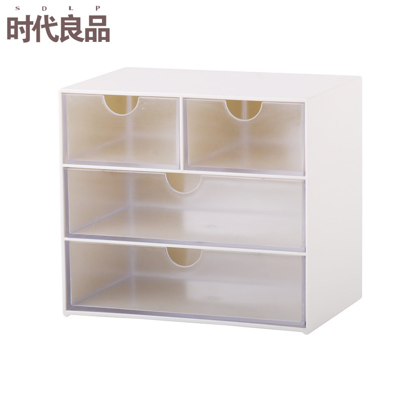太空舱造型可手提双开门带盖大小抽屉化妆品收纳盒--珍珠白(1952) 三八妇女节发什么好