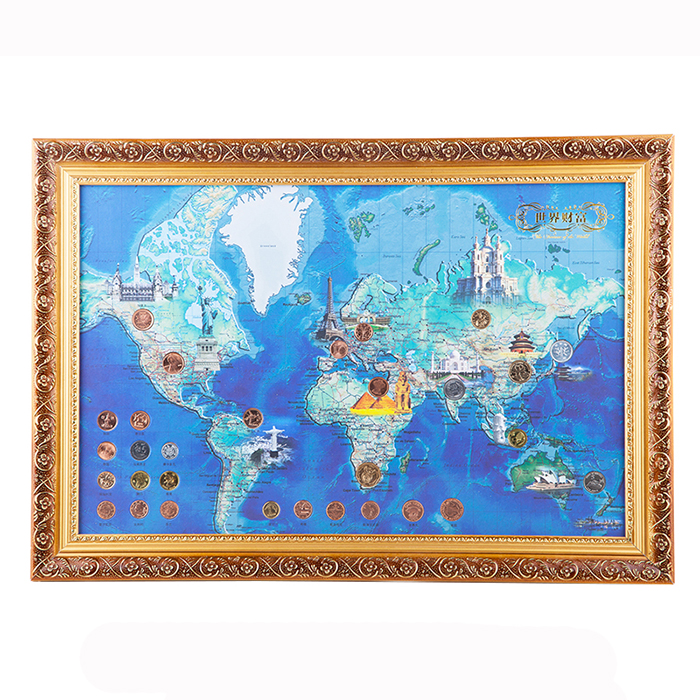 【有钱途】世界财富地图——30枚世界多国硬币相框 外币壁挂送客户送领导