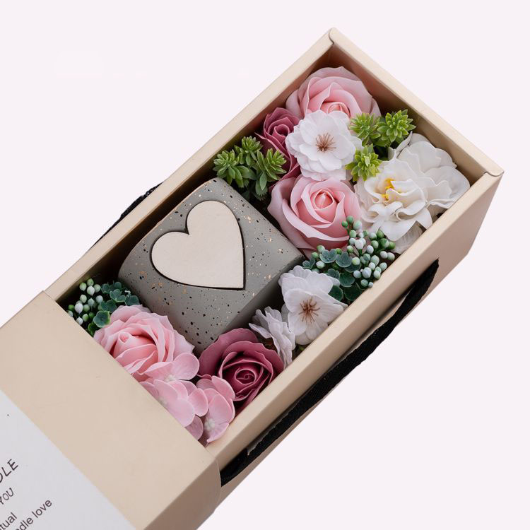 暖心花烛长盒 香皂花+香薰蜡烛组合套装 皂花礼盒 节日礼品