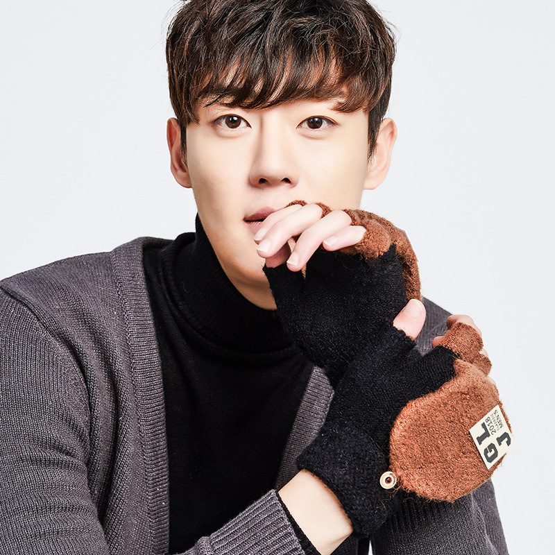 撞色半指男生针织冬季保暖手套 公司送员工圣诞礼物