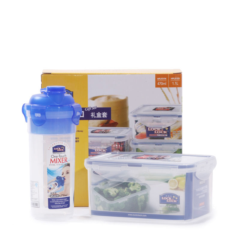 乐扣乐扣(Lock&Lock) 保鲜盒水杯套装 塑料密封饭盒收纳盒HPL931NS001