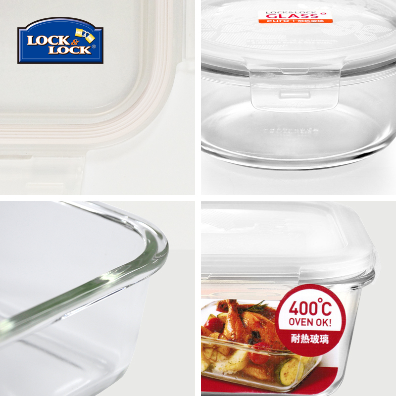 乐扣乐扣(Lock&Lock)耐热玻璃保鲜盒 格拉斯饭盒 微波炉便当盒 密封盒1L LLG445 员工礼品 活动奖品
