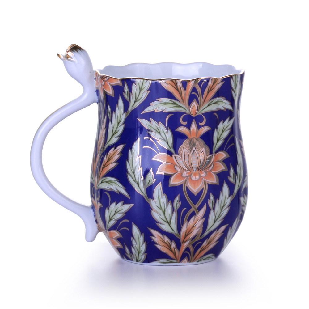 描金钴蓝马克杯 英式复古陶瓷杯 年会奖品