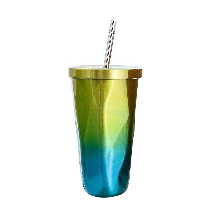 炫彩渐变不规则艺术设计不锈钢吸管水杯 创意办公杯子 房地产拓客小礼品