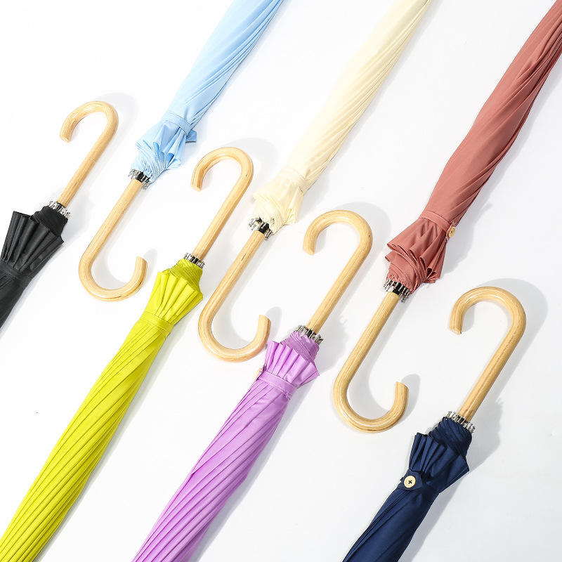 简约纯色直杆伞 16K清新PU手柄广告伞 可定制的实用礼品