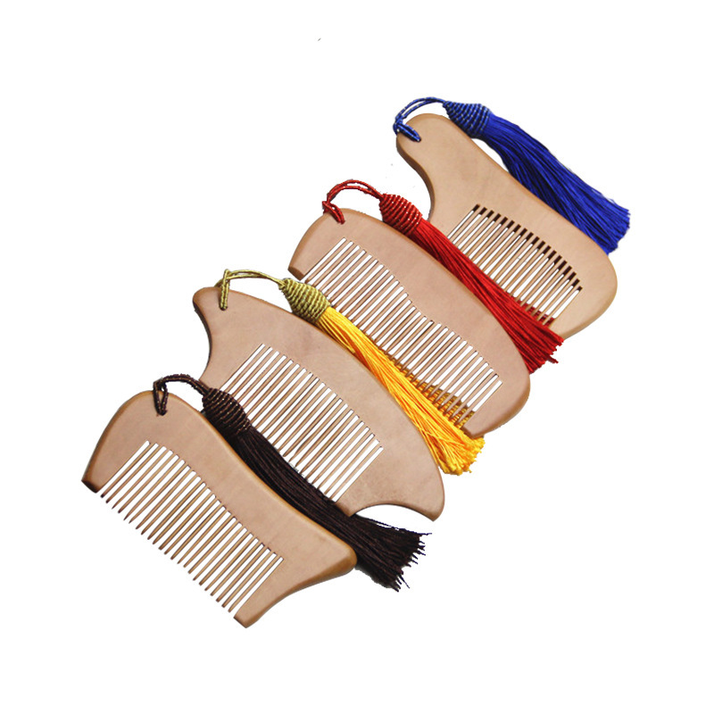 桃木梳带流苏手工制作 防静电改善头皮 健康环保 健康小礼品