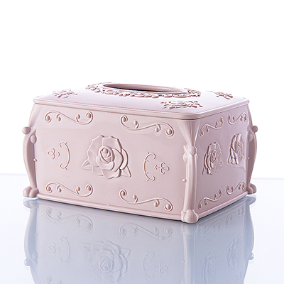 欧式玫瑰雕花纸巾收纳盒--北欧粉