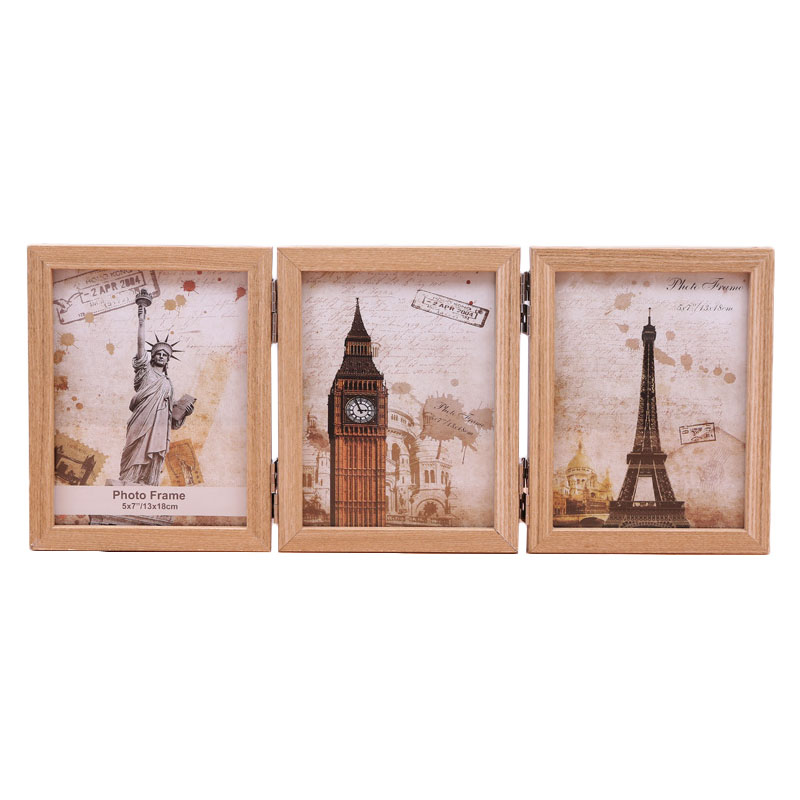 创意折叠三折相框 自由旋转摆放 双层玻璃6寸 创意客户礼品