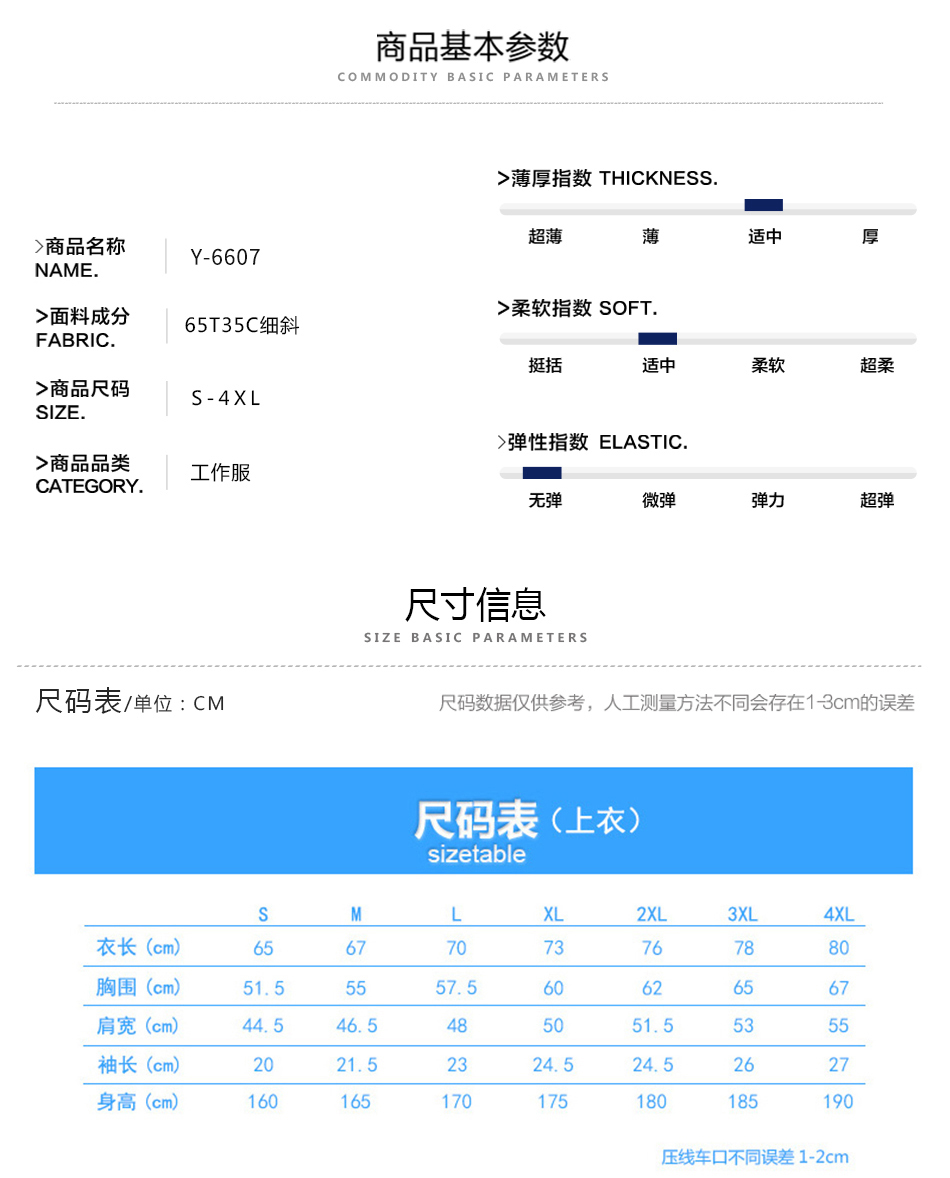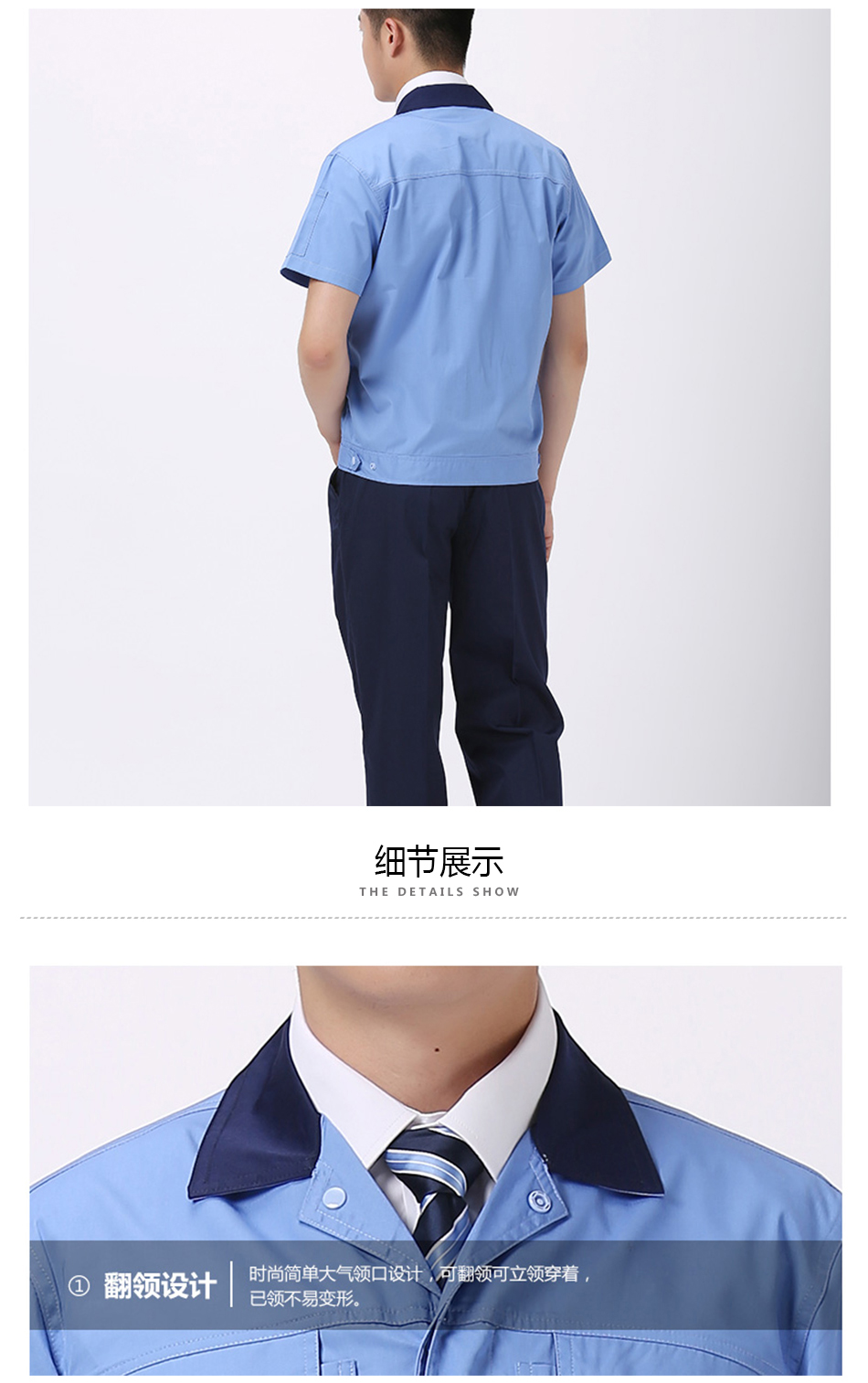 商品名称:155g细斜短袖工作服 夏季车间工服(上衣) 公司物料定制