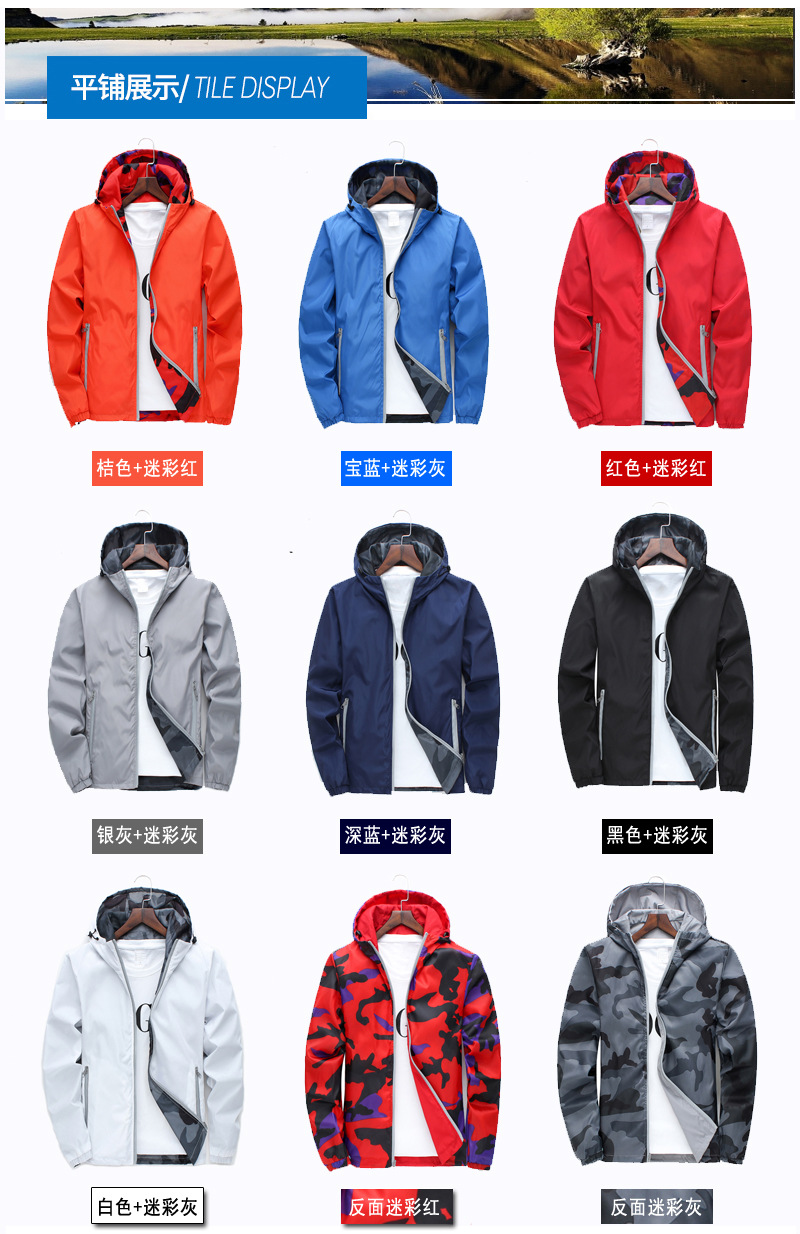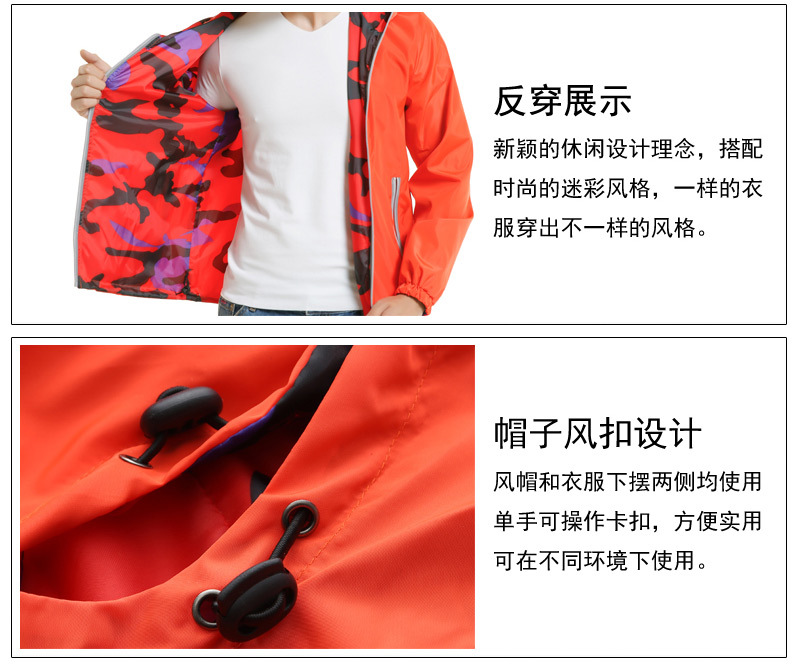 商品名称:男女同款风衣 防风防水两面穿春秋款冲锋衣 工作服 定制