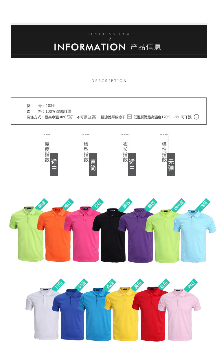 商品名称:多彩翻领短袖T恤定制 企业工作服速干衣 宣传广告衫 透气POLO衫