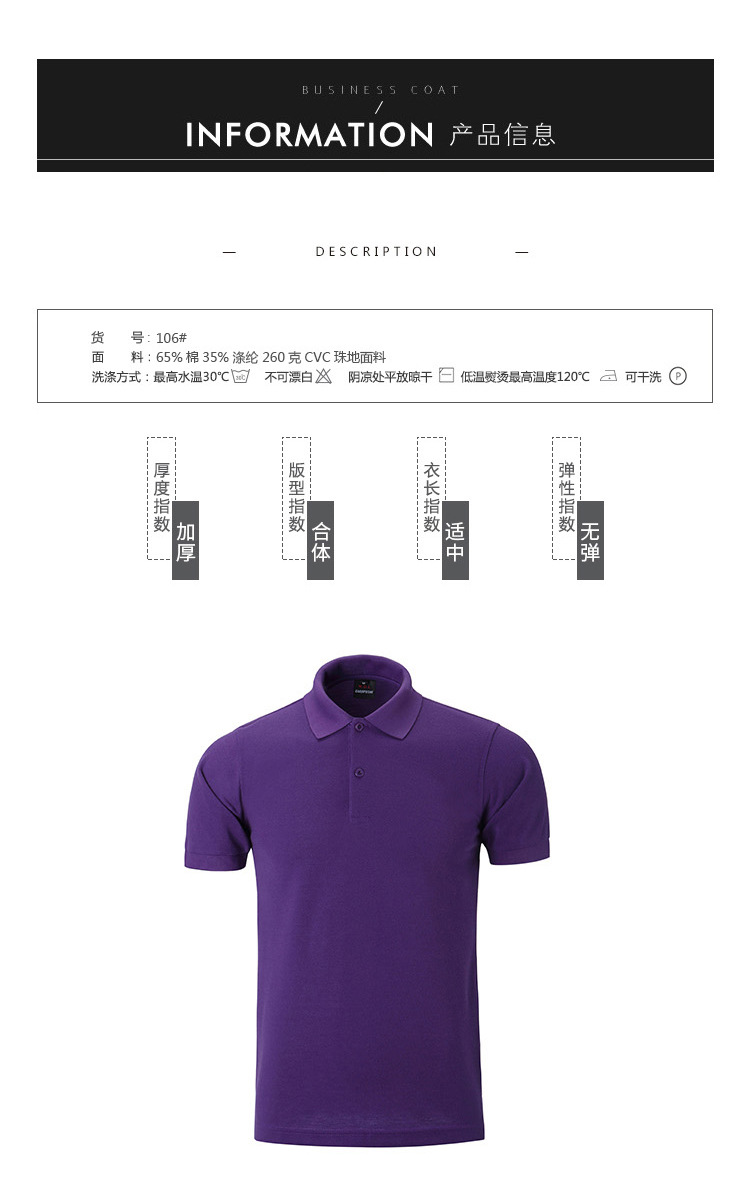 商品名称:【260克CVC珠地】春夏短袖POLO衫 翻领T恤广告衫 企业工作服定制