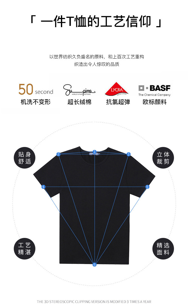 商品名称:【100次机洗不变形】春夏舒适圆领短袖文化衫 高端商务纯棉T恤 40支优质秘鲁棉 广告衫定制
