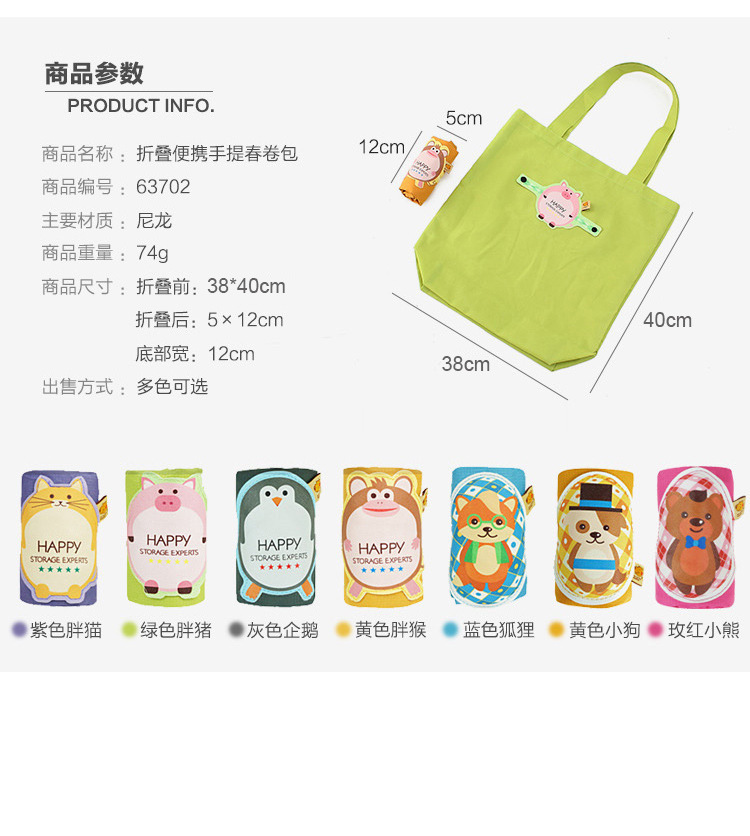 商品名称:可折叠便携手提春卷包 环保收纳袋 运动会奖品有哪些