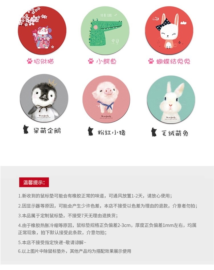 商品名称:【圣旨】圆形橡胶鼠标垫 天然橡胶细布面材质图案清晰 质感柔软光滑平整 有创意实用的东西