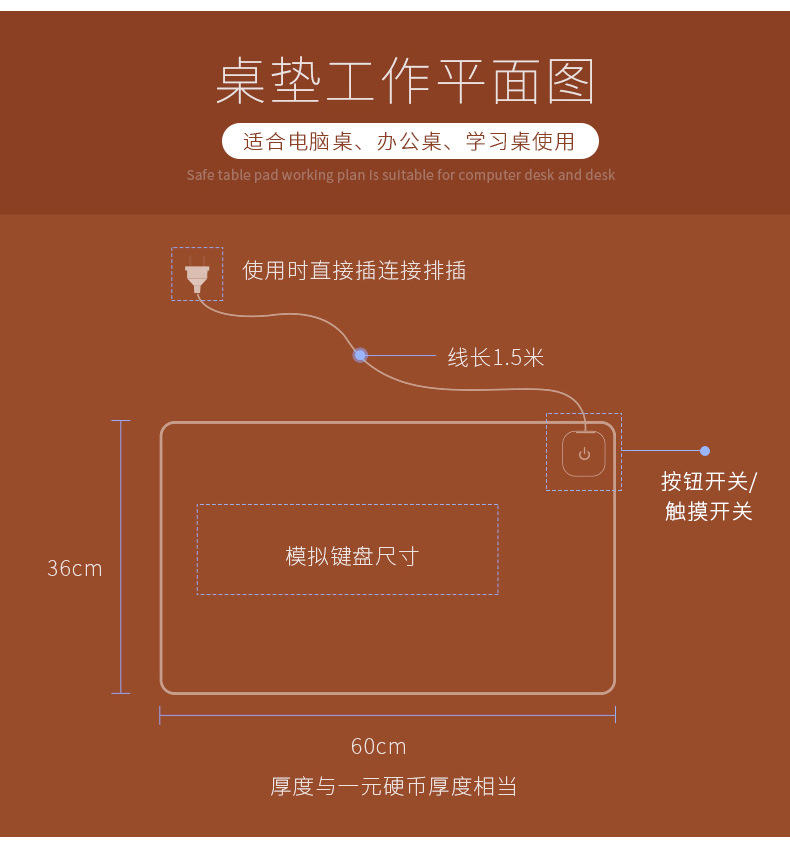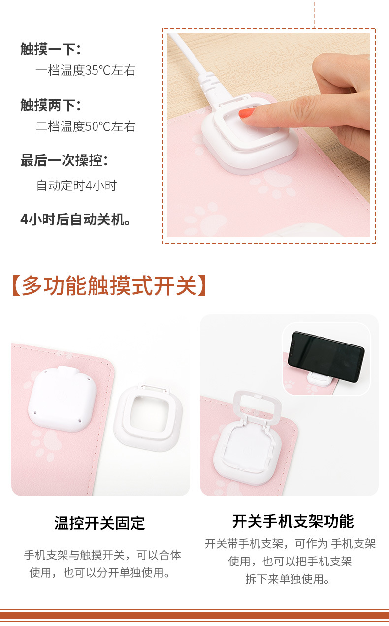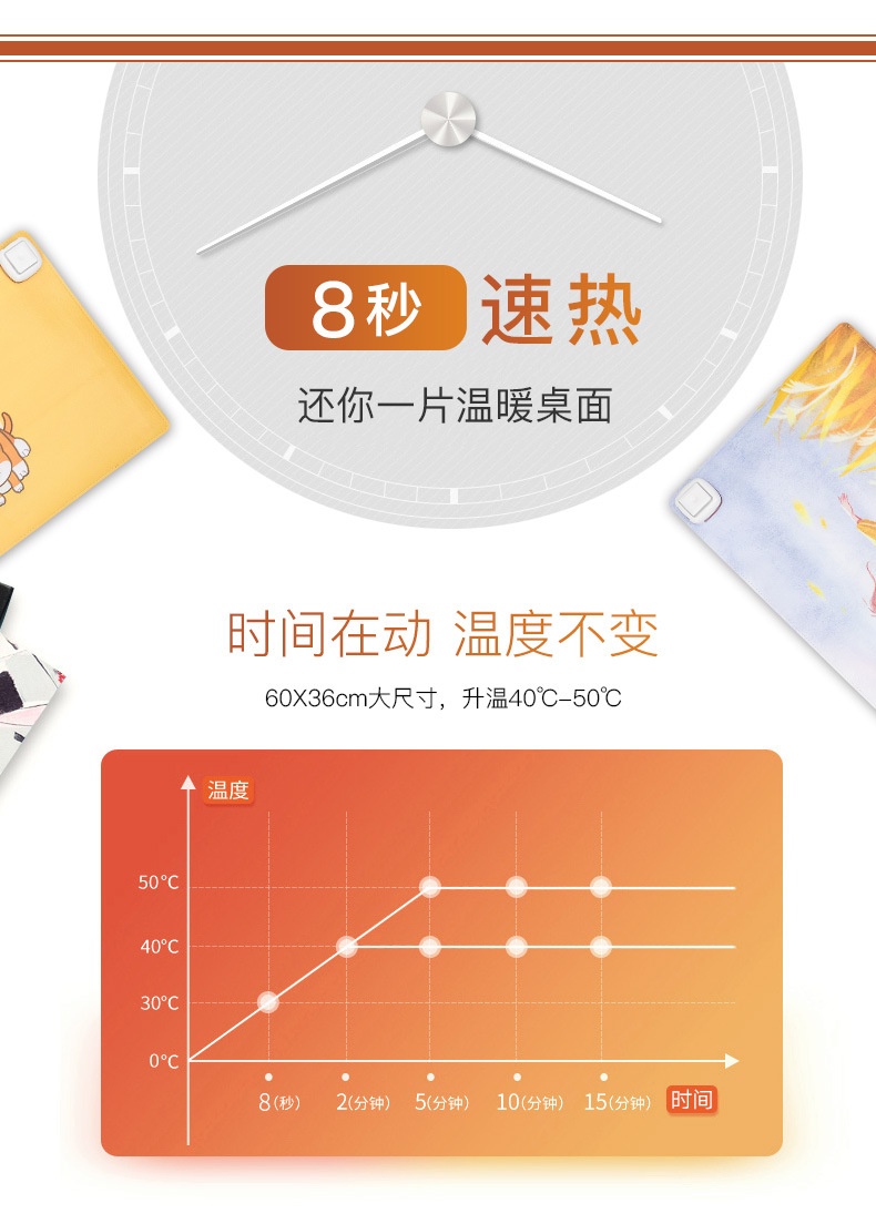 商品名称:【科技蓝鲸电热鼠标垫】防滑底部PU原料 紧密走线轻触可操纵便携使用 公司年终礼物发放