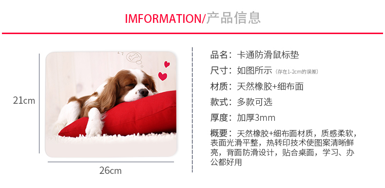 商品名称:【沙滩家族】天然橡胶鼠标垫 表面光滑平整 背面防滑设计 图案清晰鲜明 5元以内礼品推荐