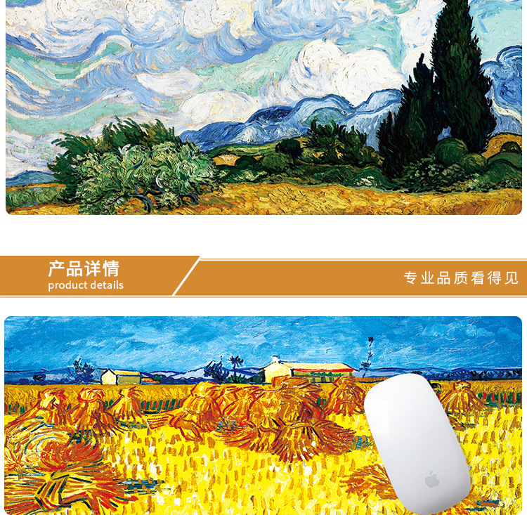 商品名称:【麦田】精美设计梵高油画大号鼠标垫 有个性的艺术风格 精密锁边 个性创意礼品