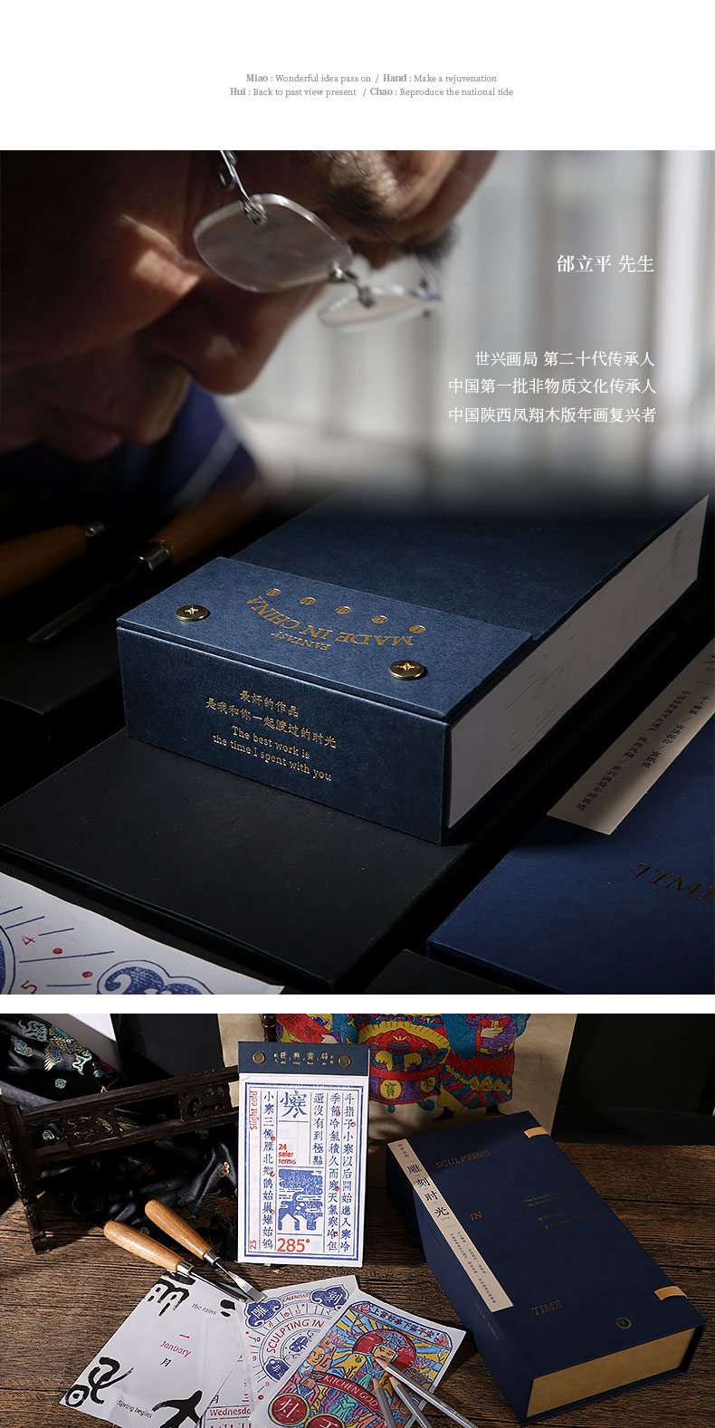商品名称:【礼盒装】国家非遗传人手工刻板拓印 雕刻时光2020年手撕台历摆件 鼠年文创礼品