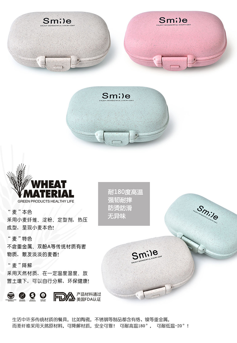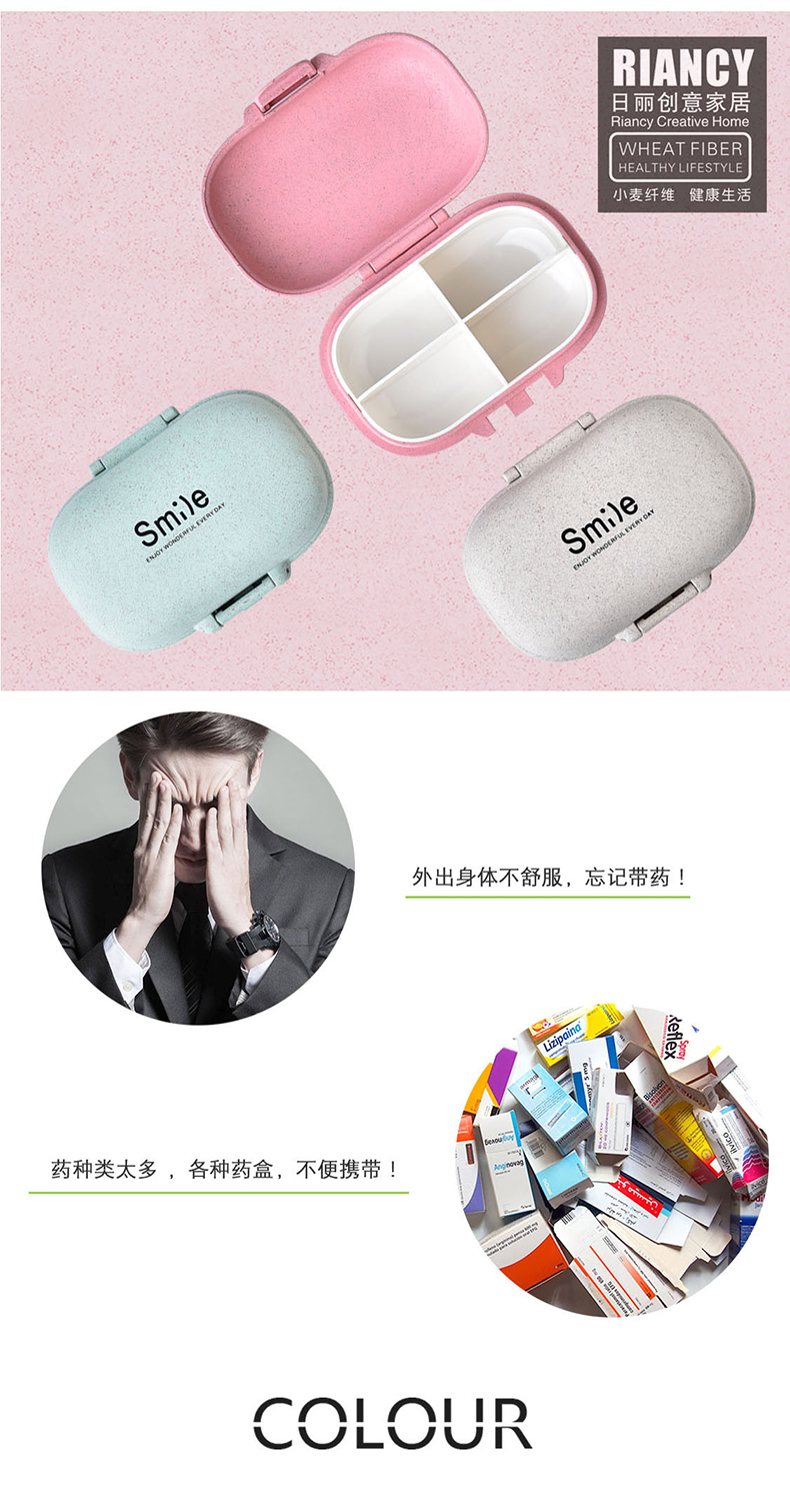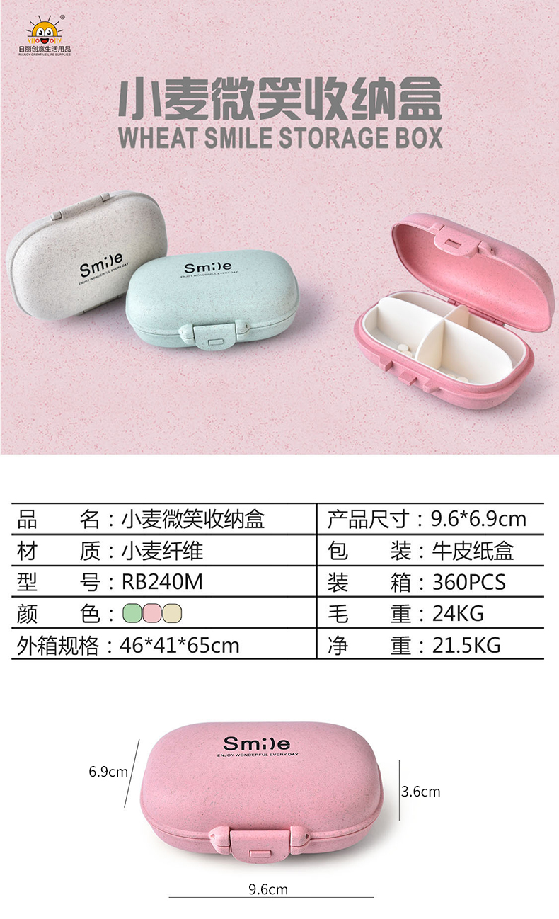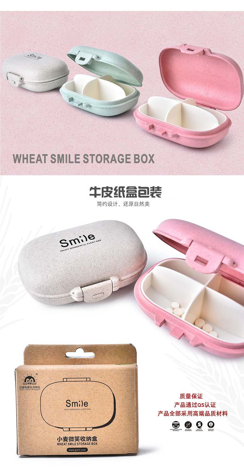 商品名称:小麦秸秆椭圆形微笑便携4格药盒 微笑收纳盒--粉色(RB240M)
