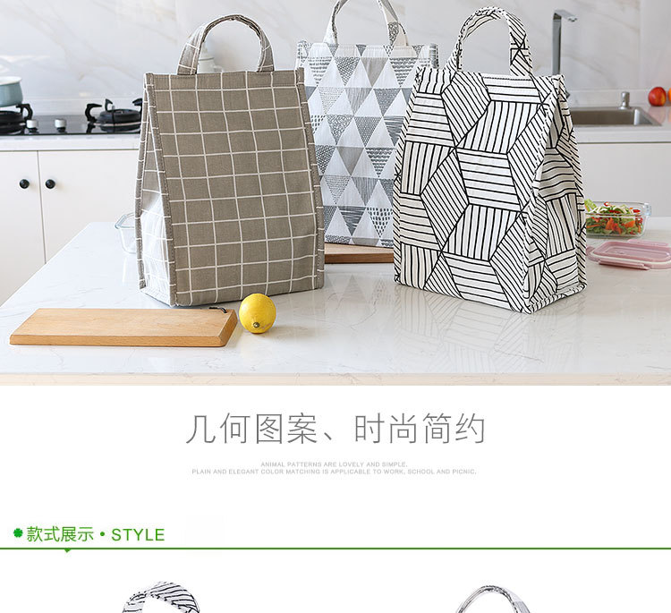 商品名称:【多边形条纹】几何图案保温袋保冷袋 轻便大容量便当包 防水防油易清理 物美价廉的小礼品有哪些