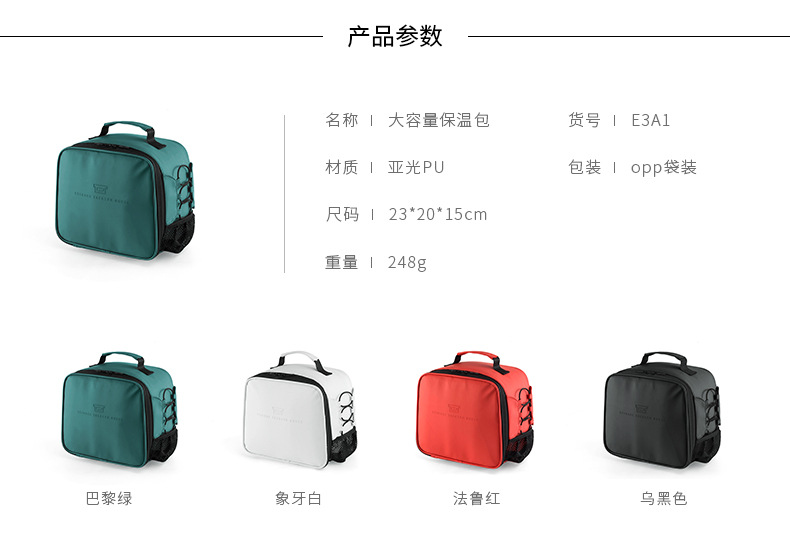 商品名称:大容量保温便当包 时尚款式纯色PU 员工活动有哪些小礼品