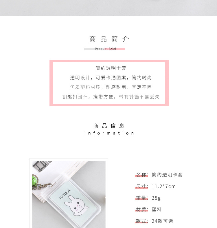 商品名称:简约透明卡套钥匙扣 公交卡证件卡 一体式固定不易丢失耐磨耐用易清洁 展会都送什么礼品