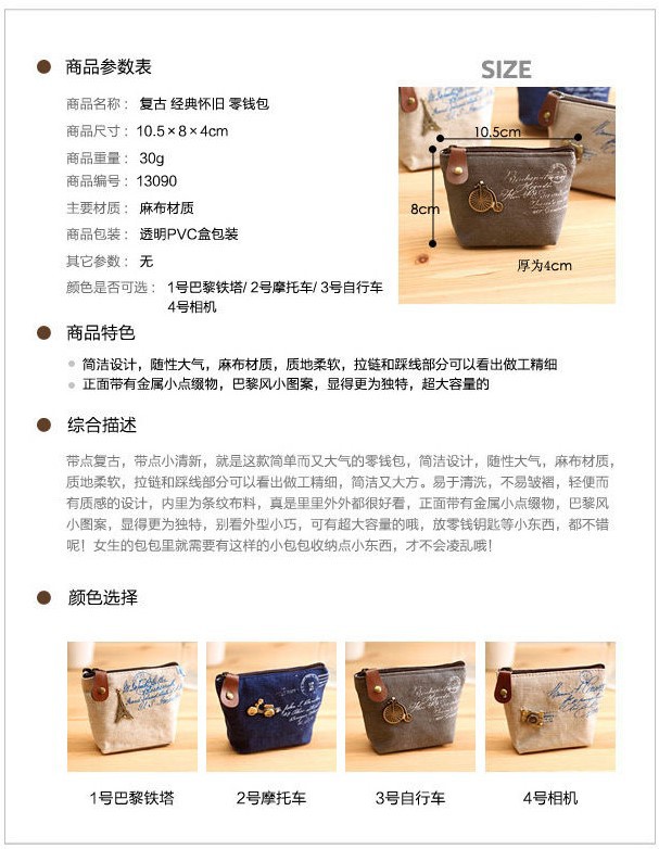 商品名称:zakka经典怀旧 帆布便携小零钱包/钥匙包 简约复古收纳包