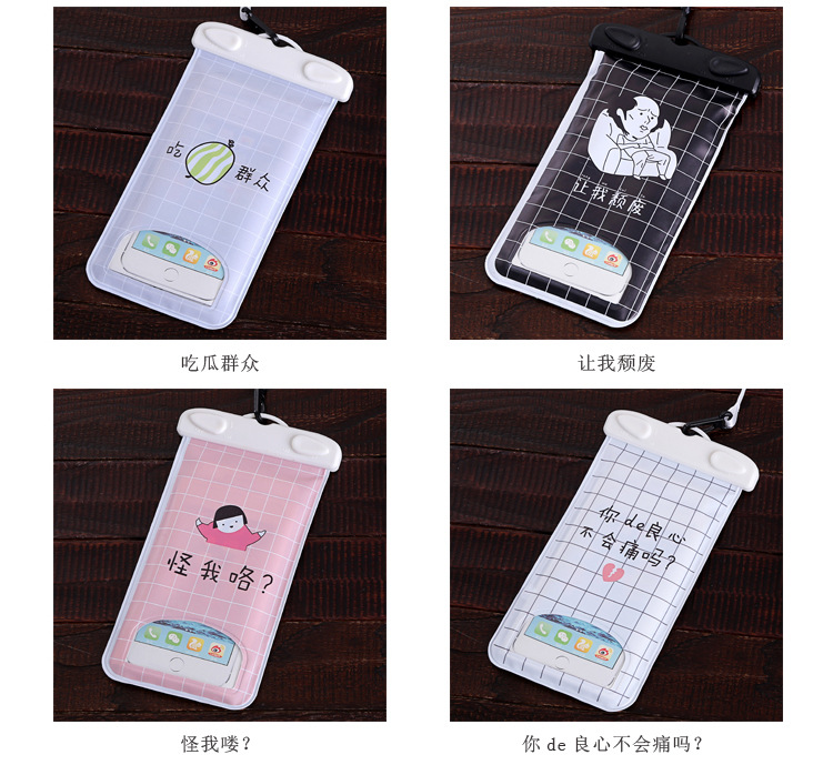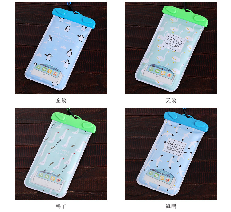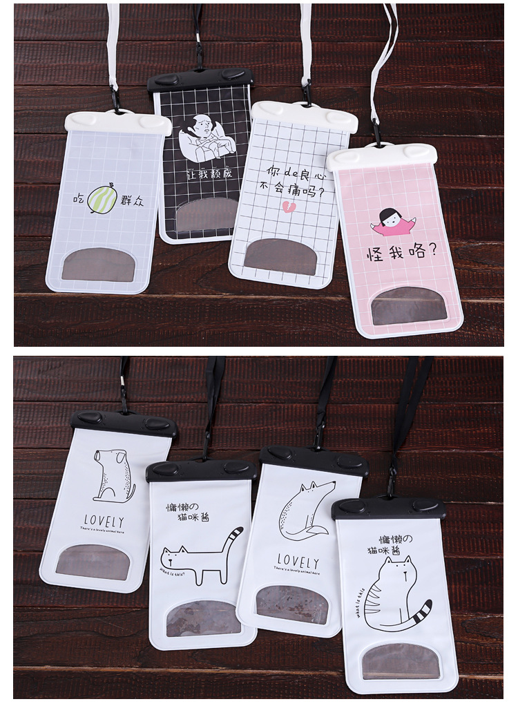 可爱小清新游泳透明防水手机袋 触屏挂脖海边潜水套水下拍照通用