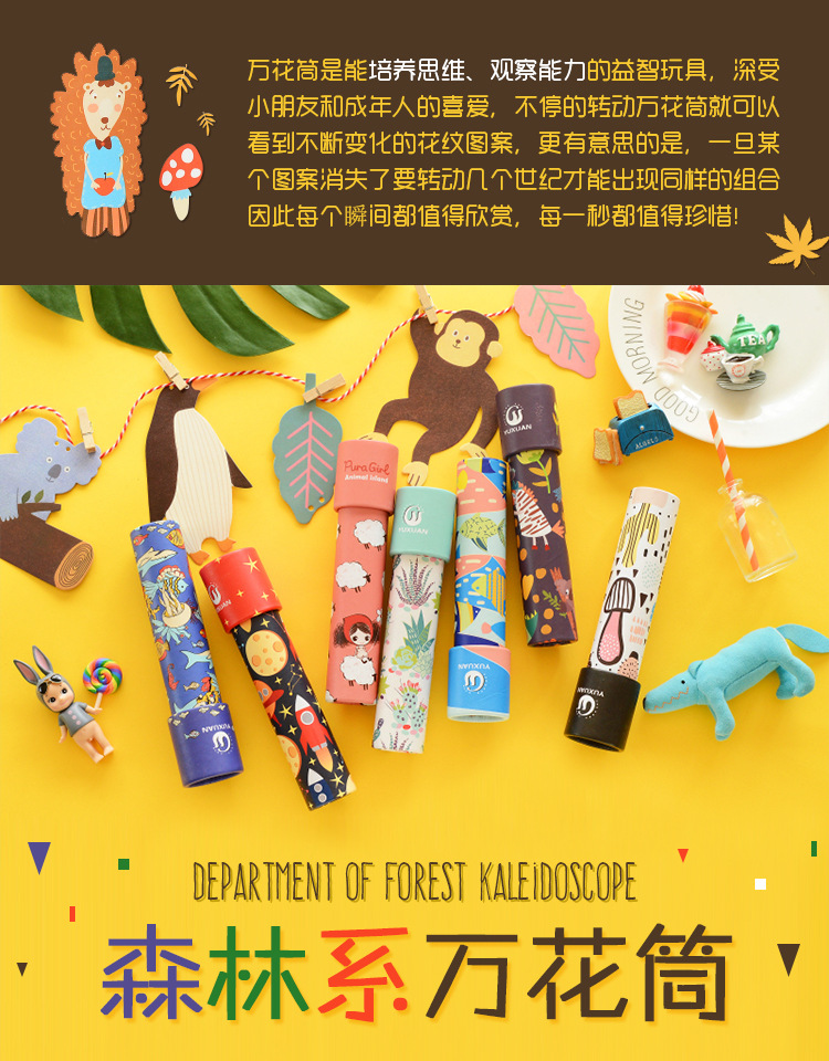 【有趣的世界】植物 创意卡通万花筒 旋转万花筒 儿童益智玩具