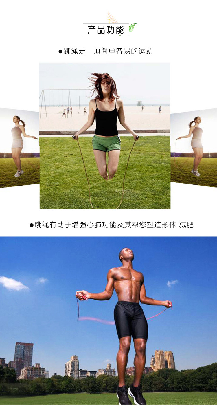 手柄PVC跳绳耐磨不绕绳 握杆舒适娱乐锻炼跳绳 活动随手礼品
