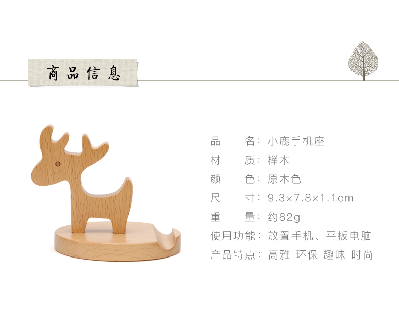 商品名称:小鹿创意木制手机支架 简约实用 活动小奖品