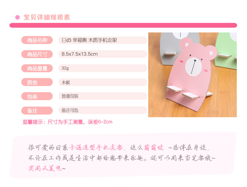 商品名称:【幸福熊】卡通动物造型木质手机支架 懒人支架 互动游戏小礼品
