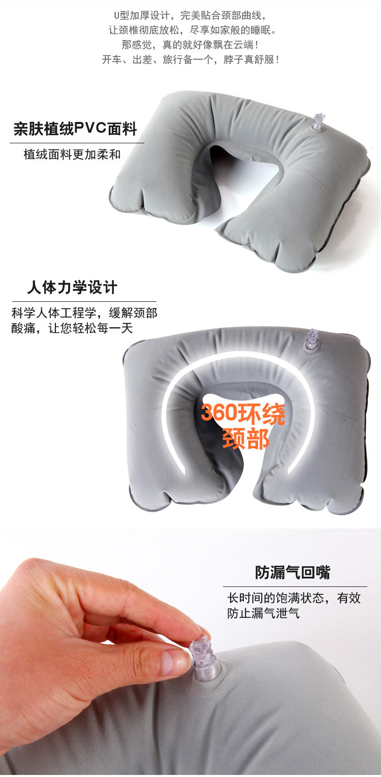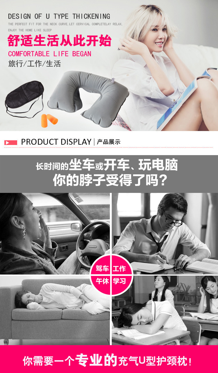 商品名称:户外旅行充气枕头 旅游三宝 U型枕眼罩耳塞组合套装(配收纳包)