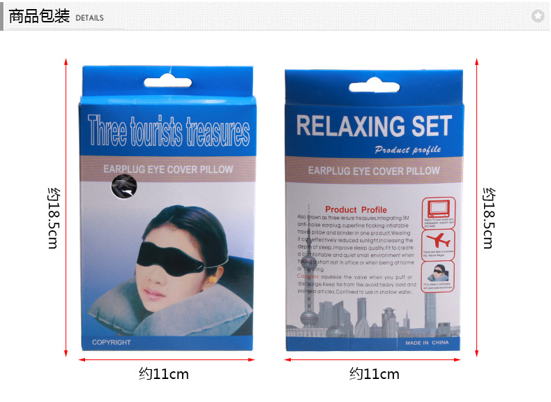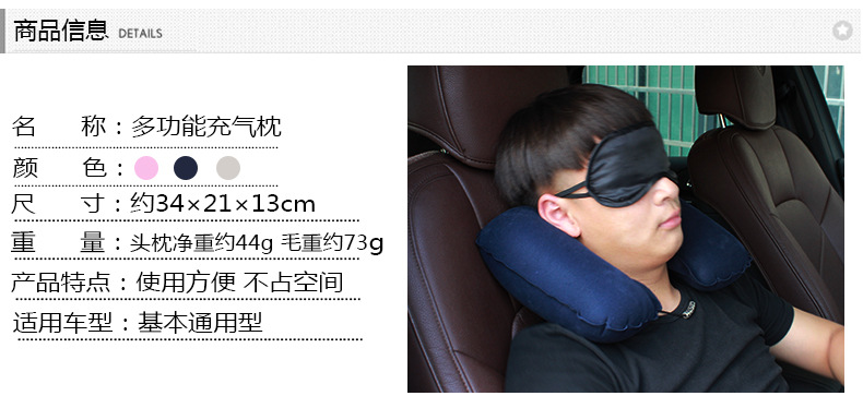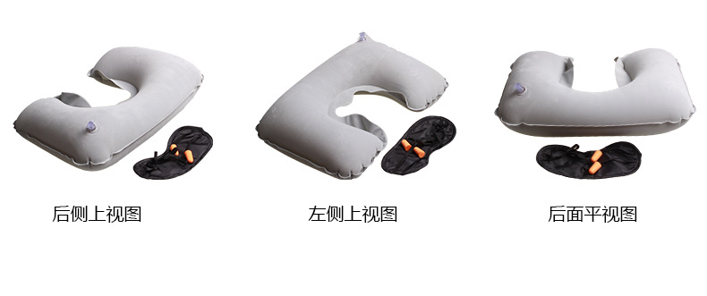 商品名称:旅游三宝 航空植绒枕头 充气枕+眼罩+耳塞 充气U型枕 汽车颈枕