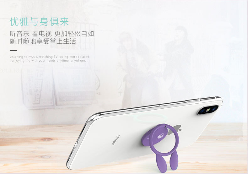 商品名称:独特个性长耳兔造型锌合金手机指环扣 自由旋转手机支架 什么礼品小而实用