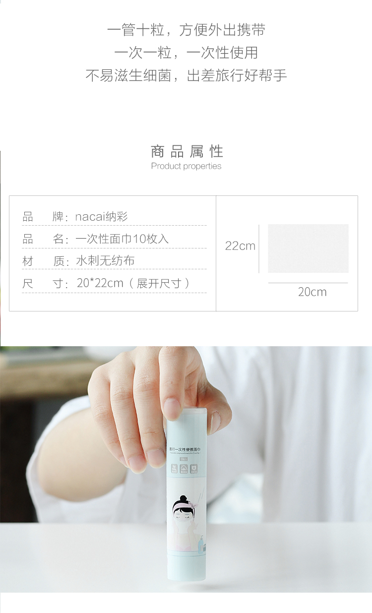 商品名称:纳彩便携盒装旅行出差无纺布压缩一次性毛巾 10枚入 扫码 小礼品