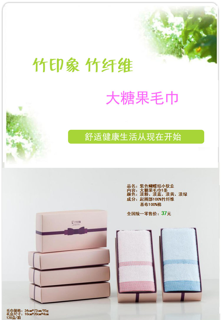 商品名称:竹印象 紫色蝴蝶结盒装 大糖果色竹纤维毛巾单条装 普法小礼品