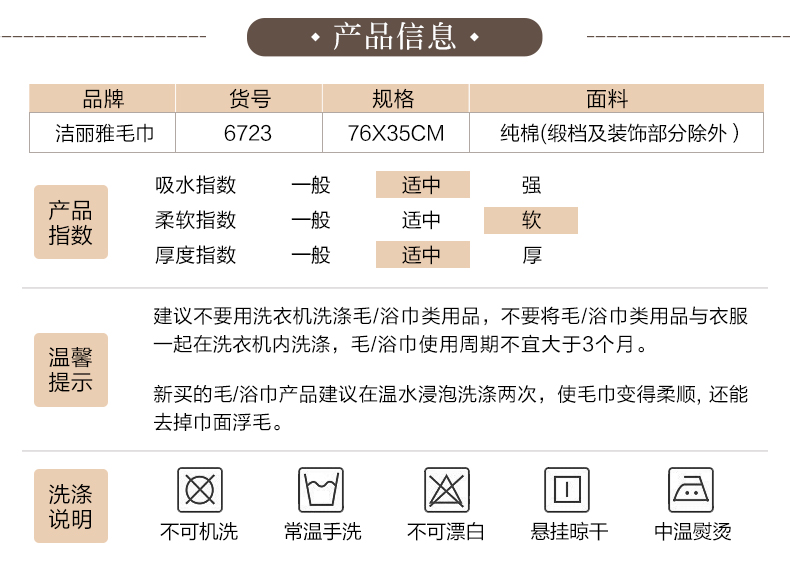 商品名称:洁丽雅(Grace)纯棉柔软素色毛巾单条 面巾1(6723)
