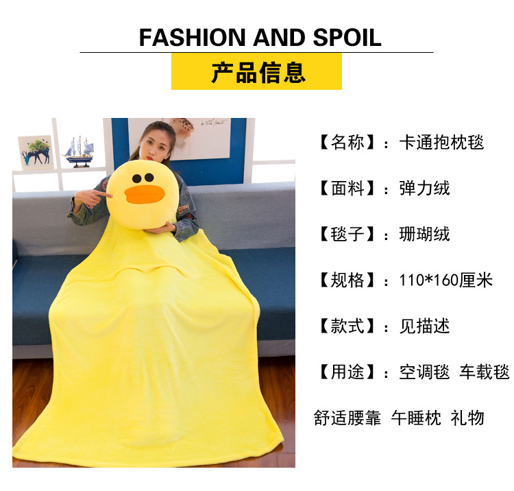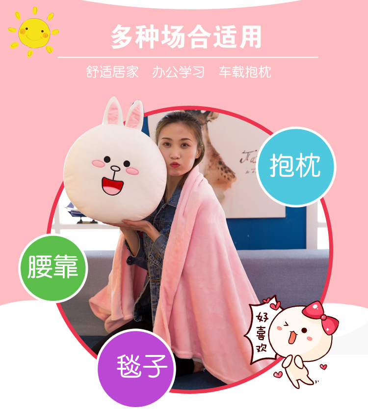 商品名称:【可妮兔】卡通抱枕毯珊瑚绒 柔软面料多种用途 顺滑无静电 创意定制礼品