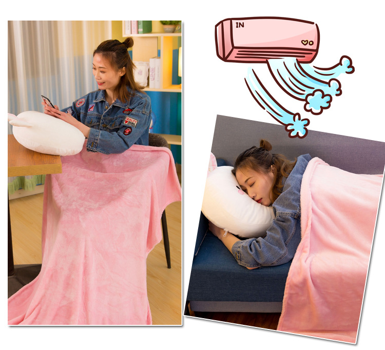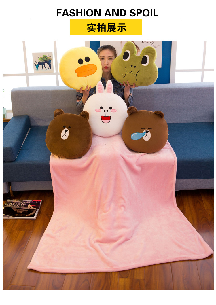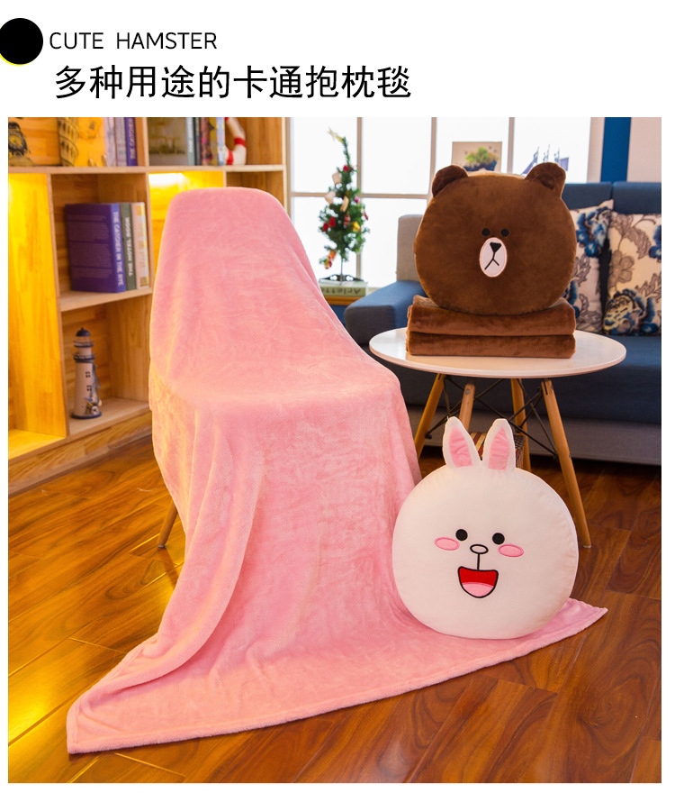 【可妮兔】卡通抱枕毯珊瑚绒 柔软面料多种用途 顺滑无静电 创意定制礼品
