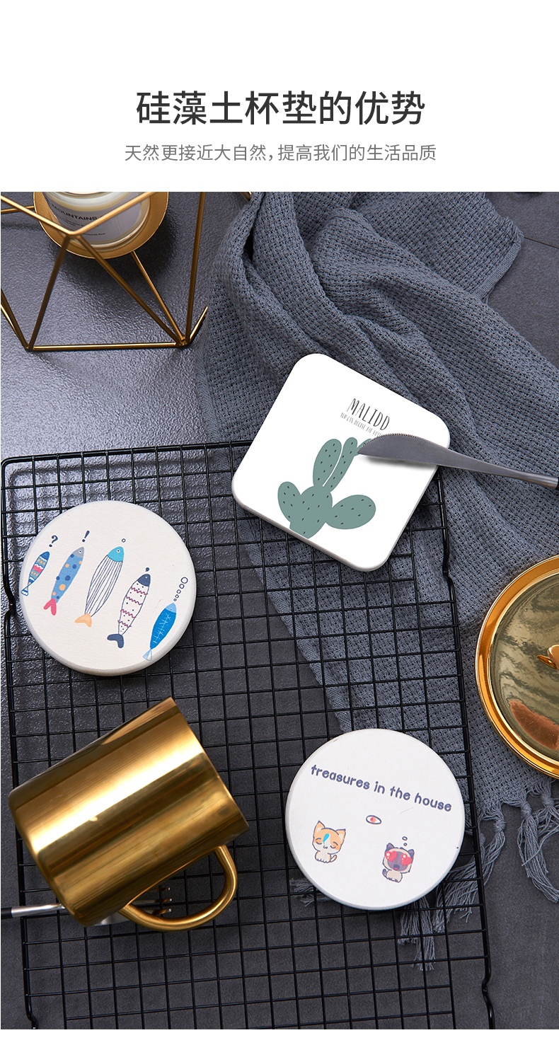 商品名称:圆形吸水防滑速干硅藻泥杯垫 洗漱垫--叶子 营销活动小礼品