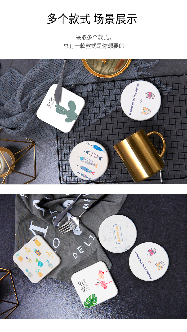 圆形吸水防滑速干硅藻泥杯垫 洗漱垫--大理石纹 营销活动小礼品