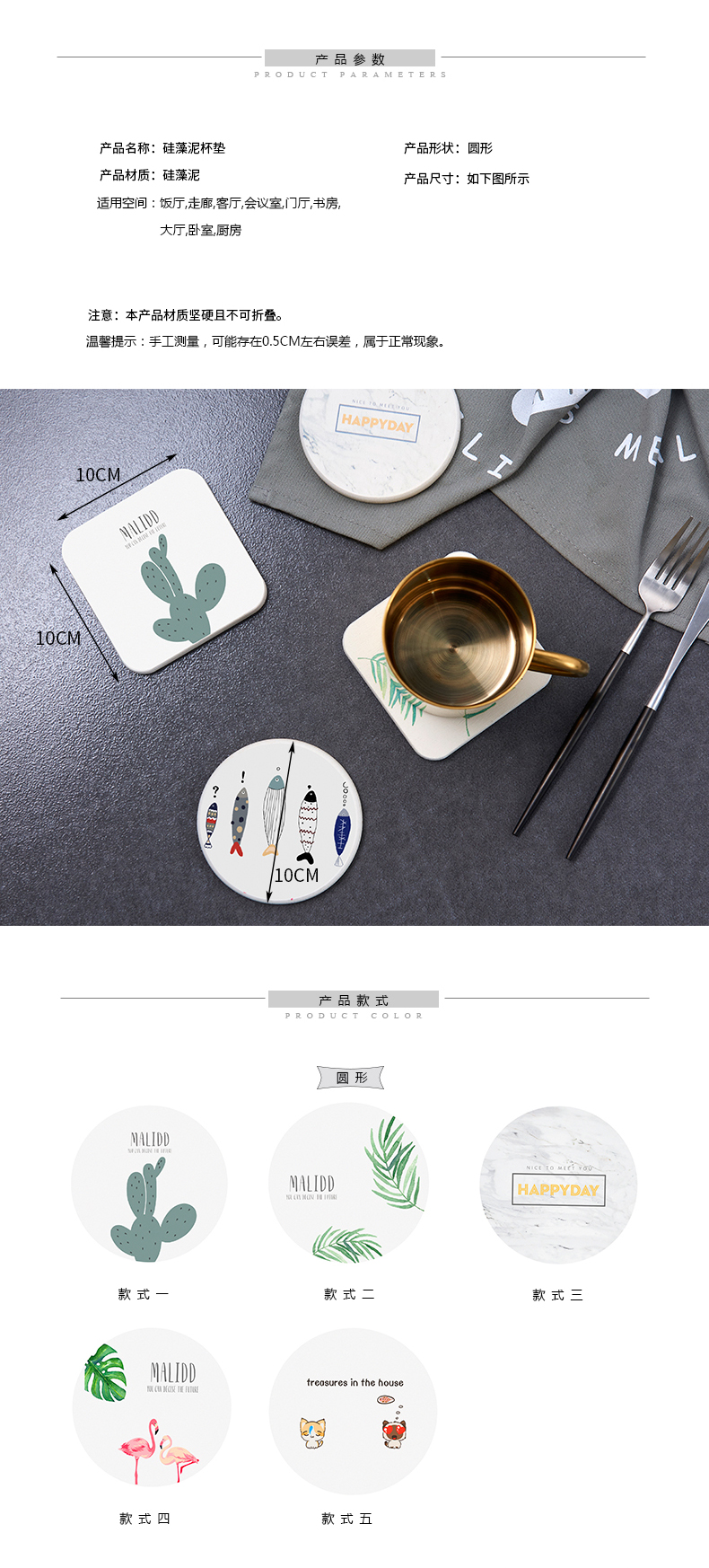 商品名称:圆形吸水防滑速干硅藻泥杯垫 洗漱垫--仙人掌 营销活动小礼品