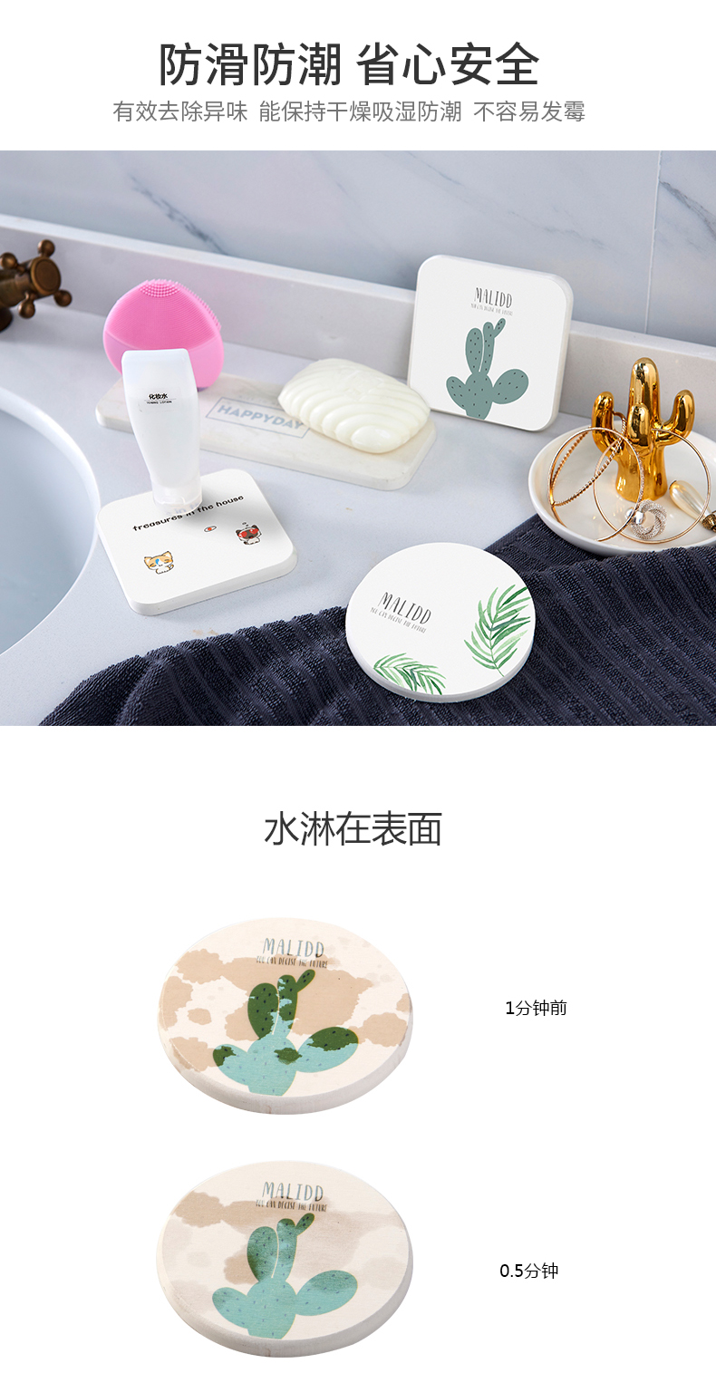 商品名称:圆形吸水防滑速干硅藻泥杯垫 洗漱垫--喵咪正脸 营销活动小礼品