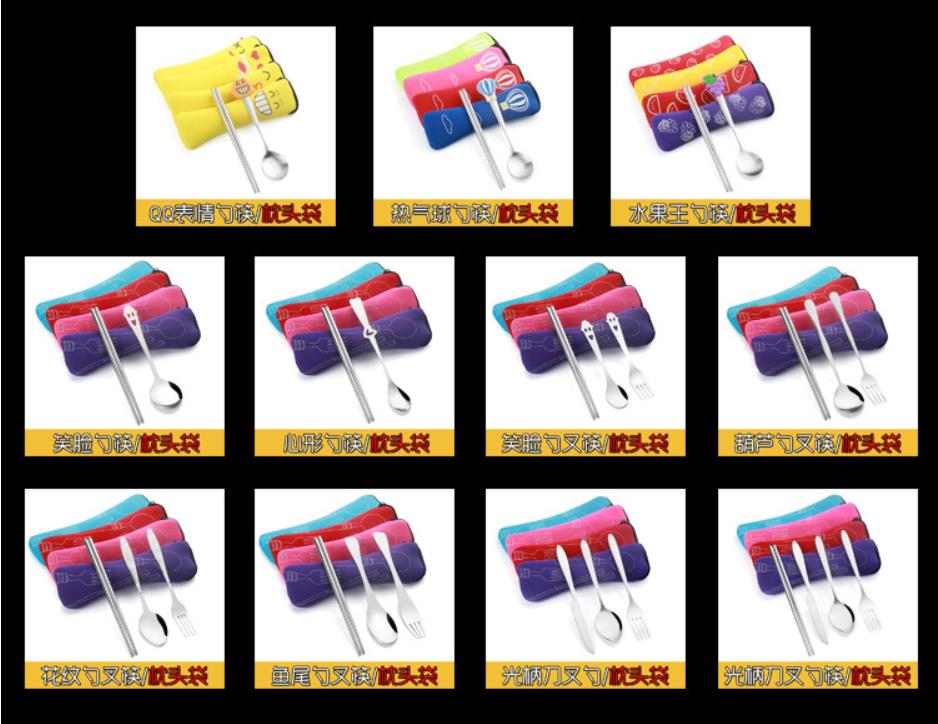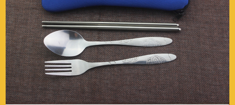 商品名称:花纹勺叉筷三件套 布袋包装餐具套装 活动小礼品有哪些