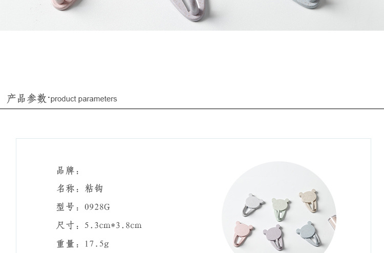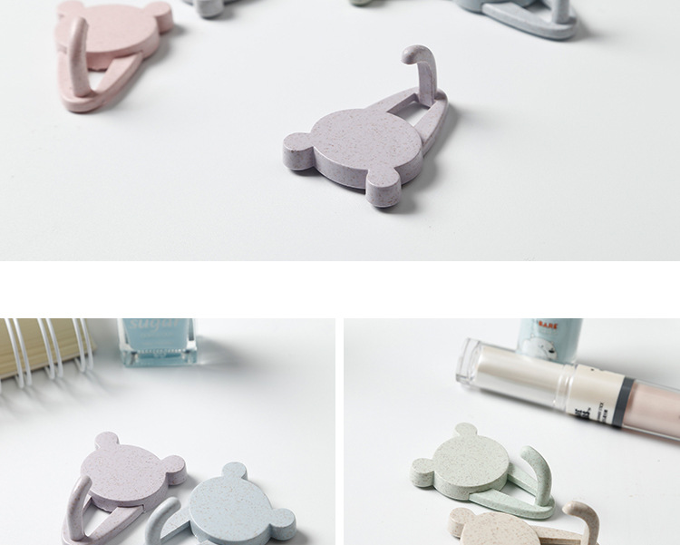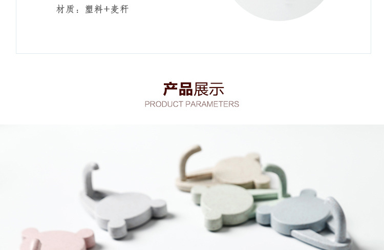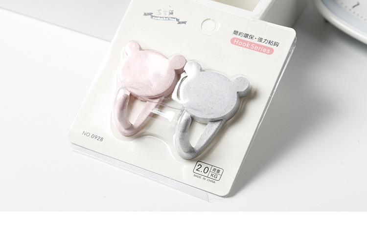 商品名称:【小熊头像】款小麦秸秆塑料秆挂钩 2个装粘贴式无痕挂钩 促销活动礼品