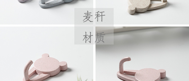 【小熊头像】款小麦秸秆塑料秆挂钩 2个装粘贴式无痕挂钩 促销活动礼品