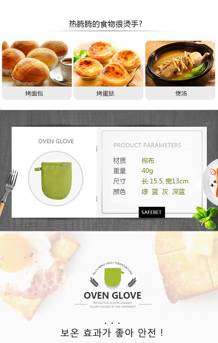 商品名称:烘焙工具耐高温烤箱隔热手套 全棉加厚微波炉防烫手套 - 短款(单只)